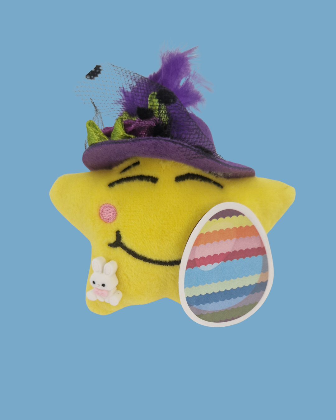Happy Star moonlights again with a beautiful feathered Easter bonnet, wooden Easter egg and cute bunny!
